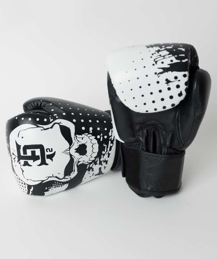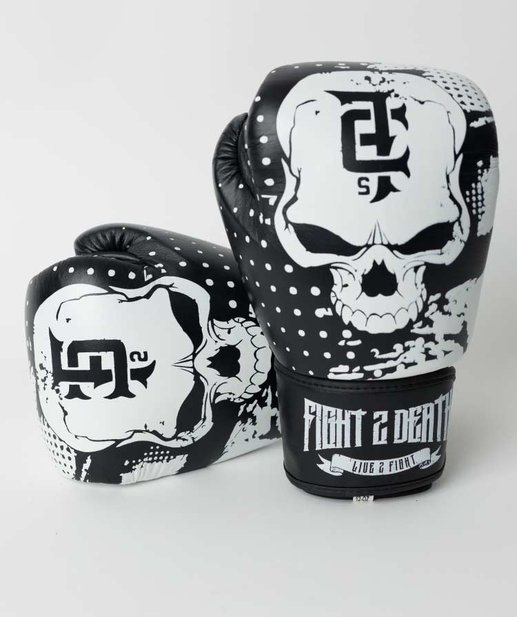 Super fit with ergonomic design to protect and align your hands to train with confidence. Leather premium boxing gloves with printed Fight 2 Death skull logo.